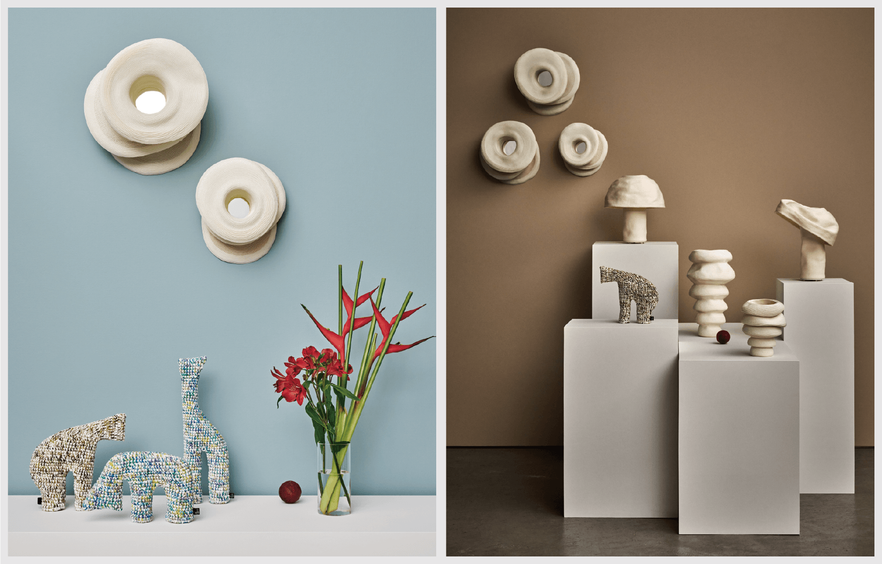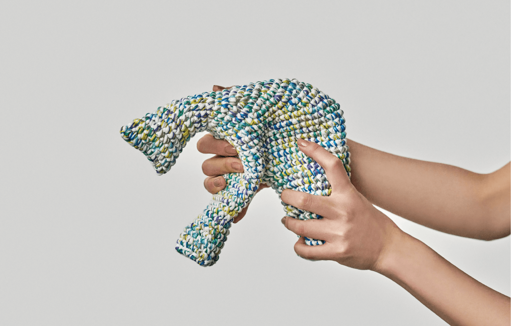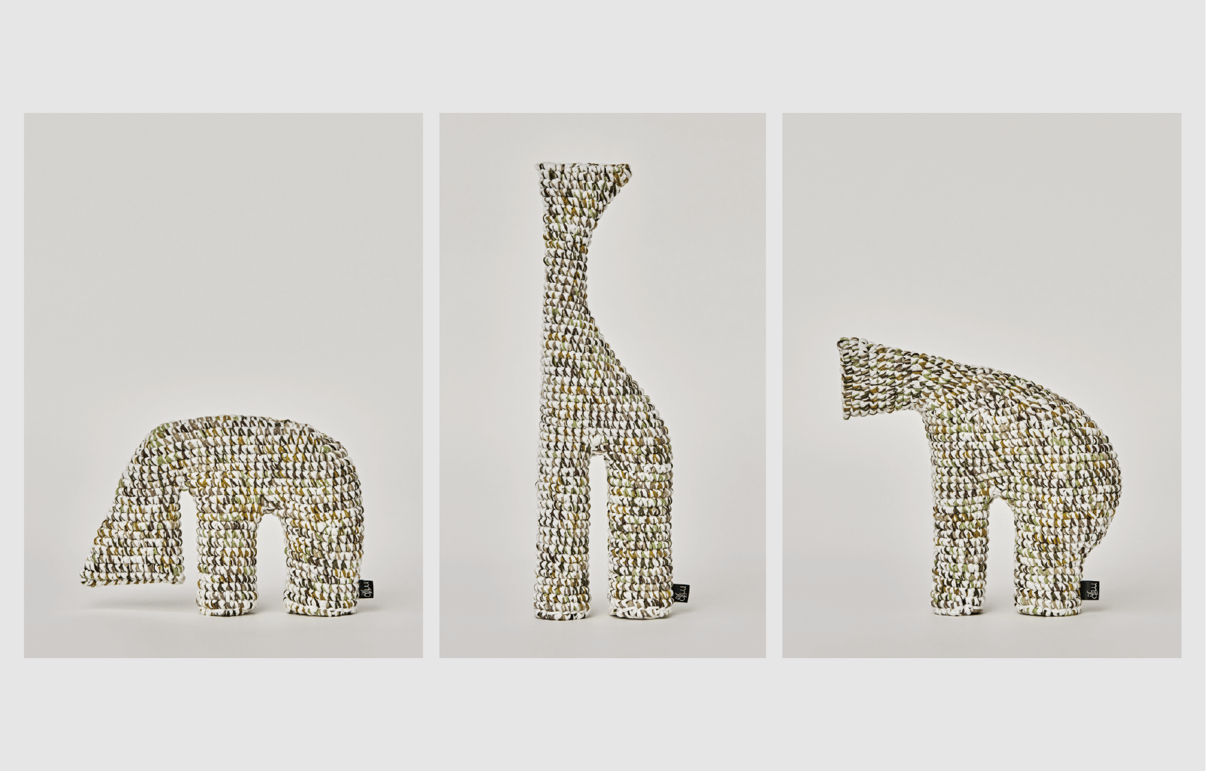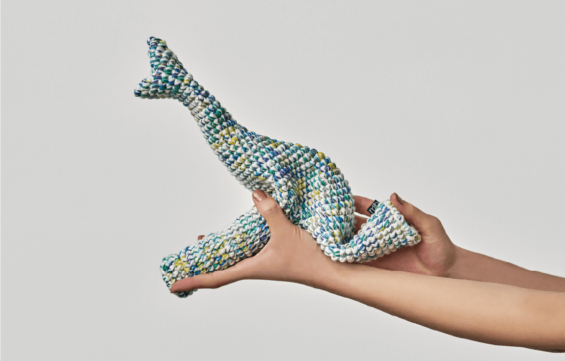 For the “I am” line of products, we mainly use a special, space-dyed cotton paralleled yarn with cushioning properties. Each product is crocheted carefully, one at a time, by skilled craftsmen. Unlike ordinary stuffed animals, “I am” have no cotton inside, due to the strength of crocheting and the properties of the material used.These features allow “I am” to be shaped into a variety of forms.Children might be able to transform them into a variety of things, beyond the imagination of adults. Adults might shape them into appealing decorations. And children might discover something new when they see these decorative shapes.From children to adults. From adults to children. You can use “I am” for non-verbal communication.That is the hope of “I am”.