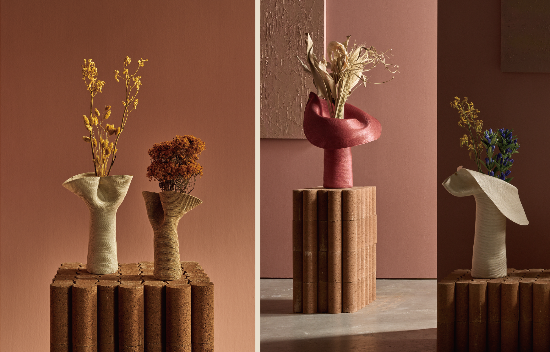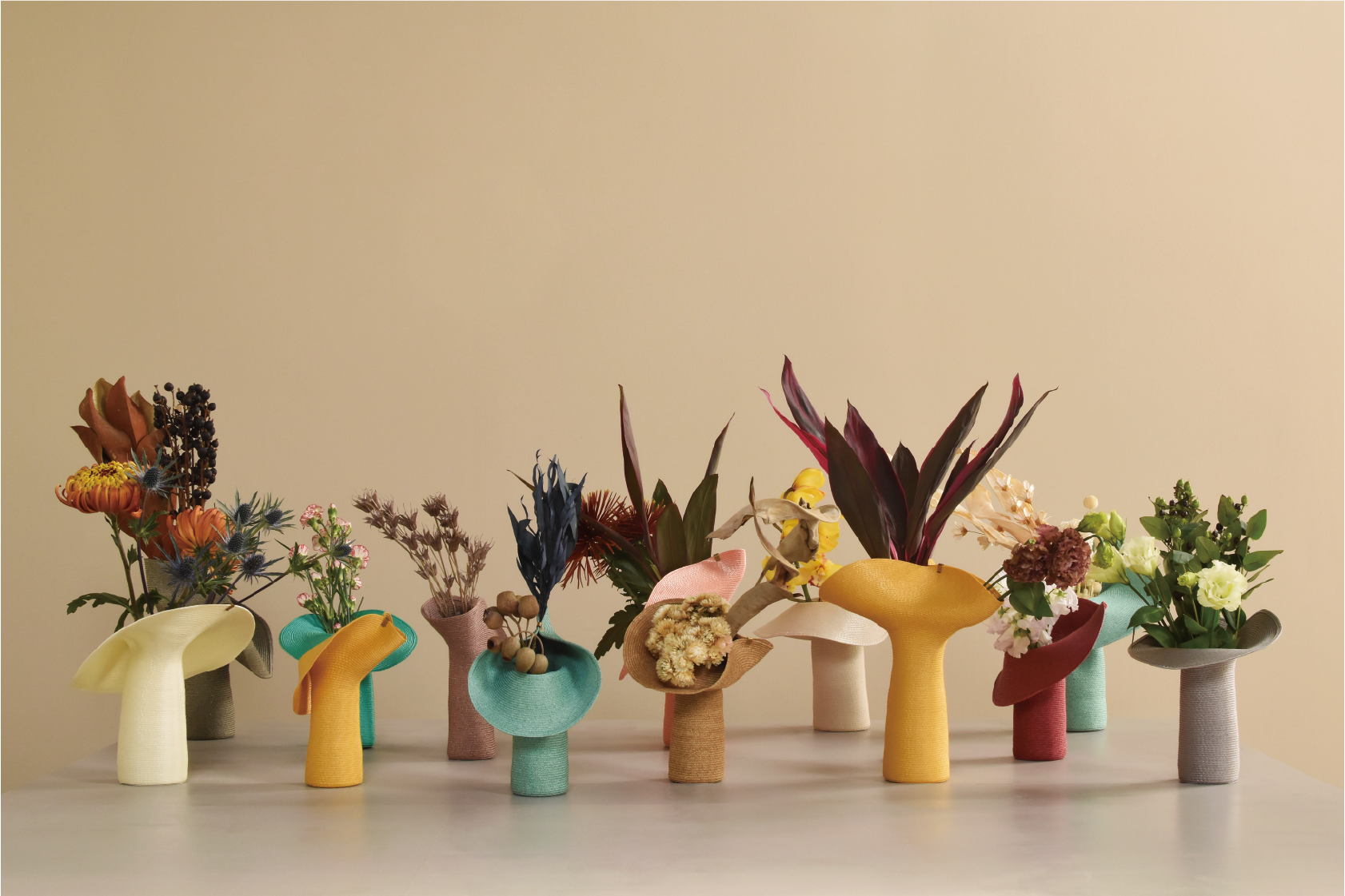 Decorations around your neck, such as the shape of your collar or necklaces, significantly change the impression people have of you.From modern-day turndown collars, to standing collars that hide your neck, to large neckpieces called ruffs worn in the middle ages, the collar has been an important element in the history of fashion as well.The “Lapel” is a flower vase that is a collar for when you arrange flowers.You can spread the collar open to lay the flowers on the surface, or fold the collar together and secure it with a clip. We hope you enjoy a lifestyle where you can fix the collar to bring flowers to life.
