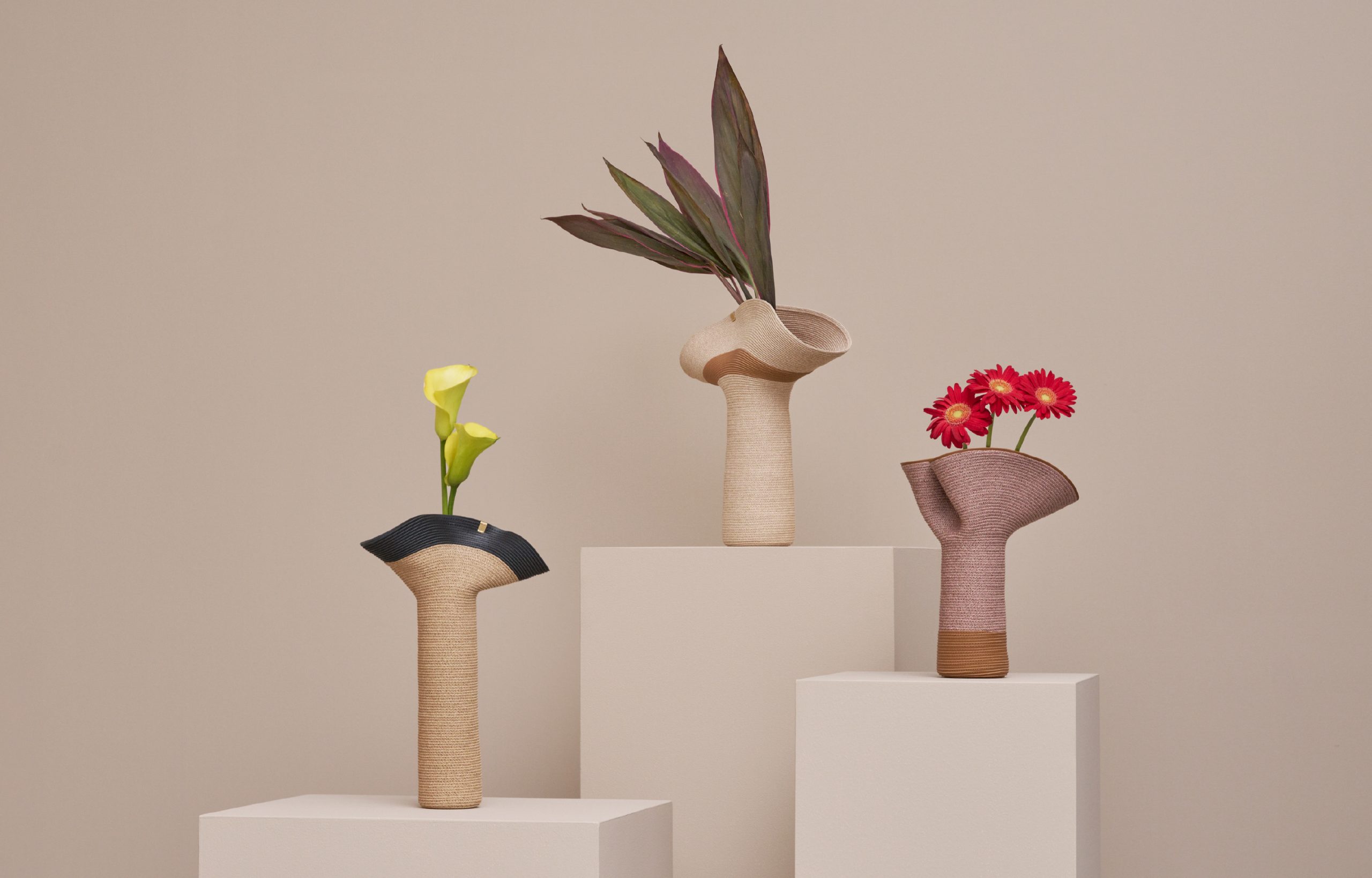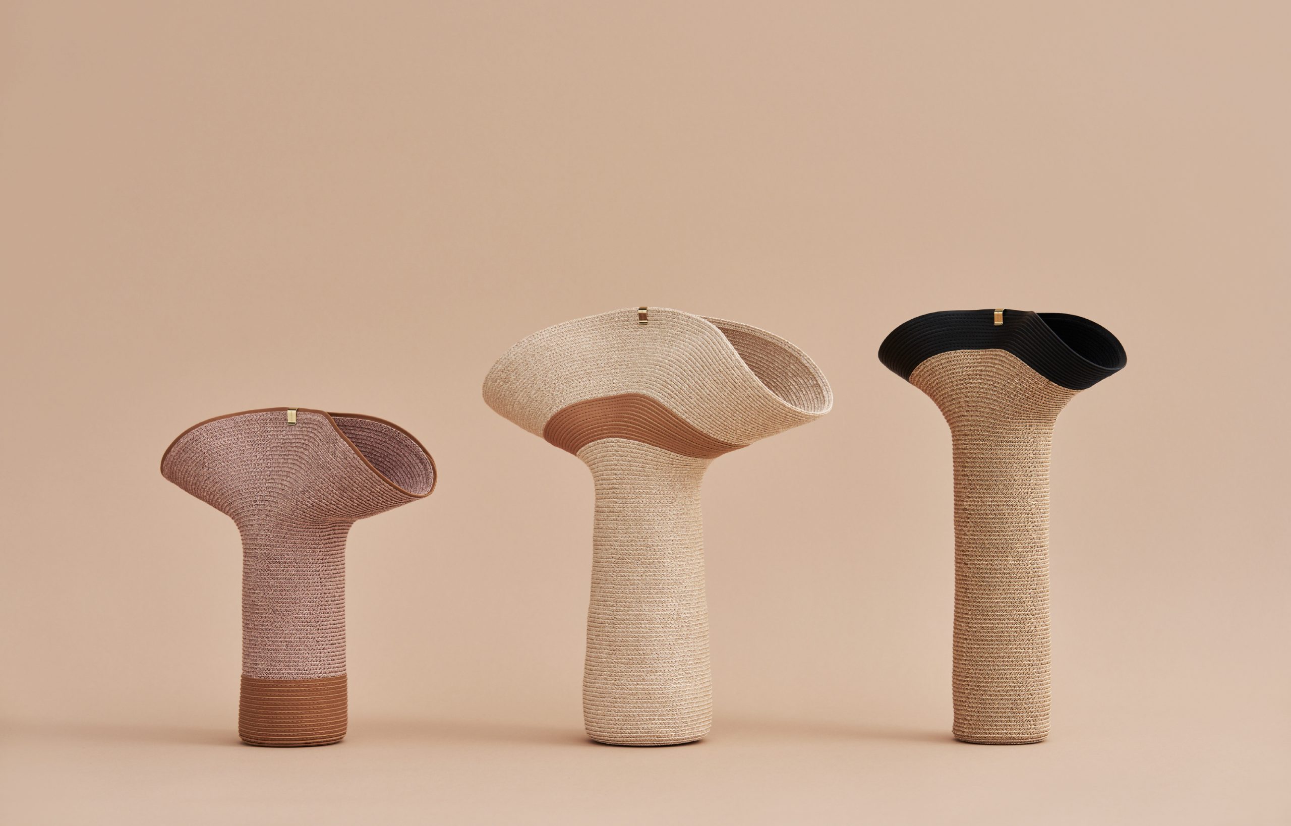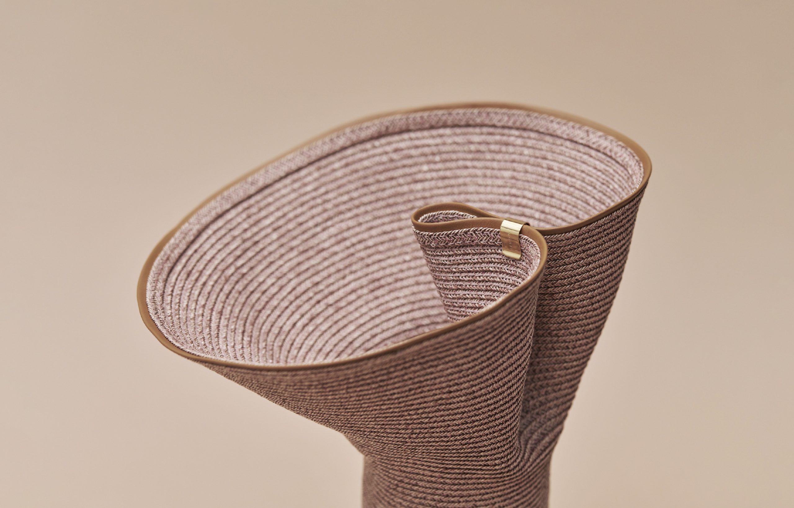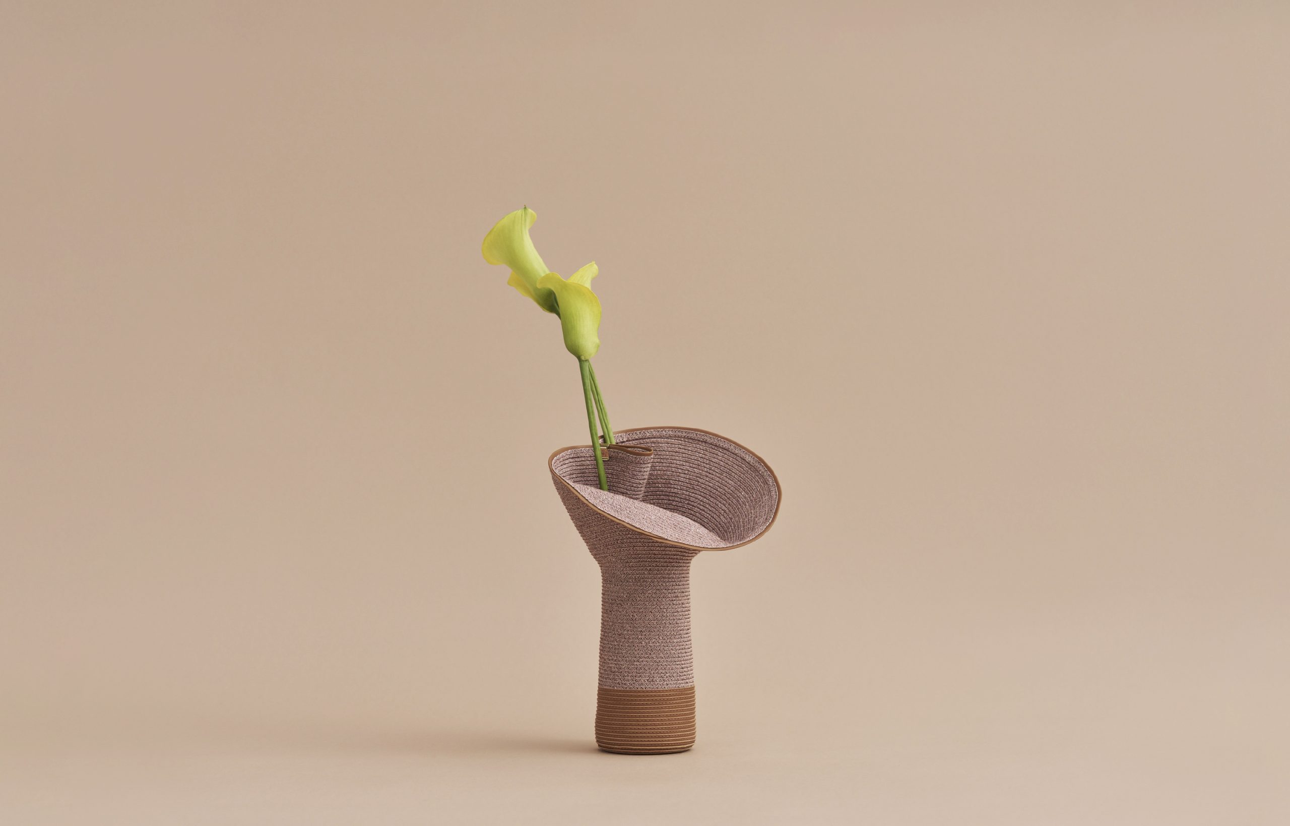 An exclusive collection with Polène, a leather goods brand from Paris. Based on the theme of upcycling POLÉNE's leather and MOBJE's paper materials and changing organic forms, the two cultures, techniques, and materials fuse to create three types of flower vases based on Lapel. Polène is committed to minimizing the waste of leather, and they want to give value again to this precious material by utilizing the leather scraps from the production process for new uses. We share this desire, and through the filter of MOBJE, we have interpreted leather as a string material like paper and incorporated it into our designs. As same as Lapel, the vase can be transformed into any desired shape with the use of a custom metal clip. This product is only available at MOBJE ONLINE STORE.