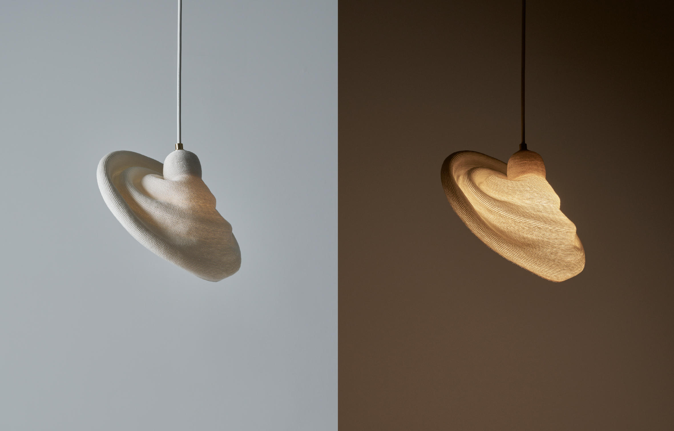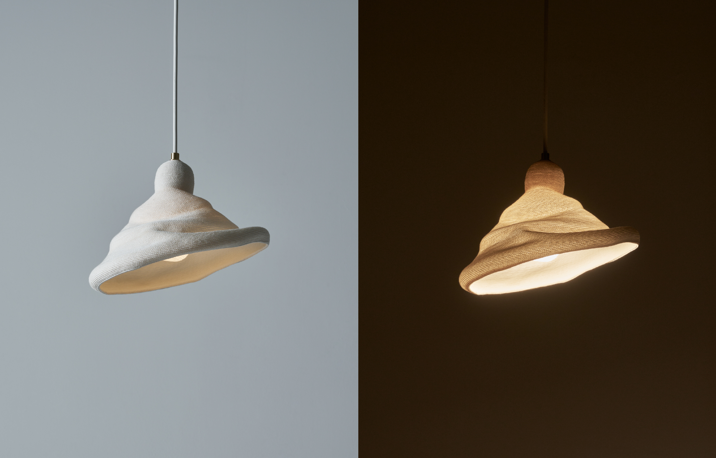 Inspired by ripples in water, the basic shape of posinglight is the moment when a drop of light falls on water; we can enjoy the way the shape changes as the light spreads. The shade is mainly made of Japanese paper, which has excellent transparency and retention properties. A variety of beautiful expressions are revealed as light passes through from inside. The light bulb has a special covering that diffuses gentle light throughout your living space, rather than allowing the light source to reach your eyes directly. You can use the ripple-like ribs as guides for changing the shape. By lowering just one side, you can adjust the direction of light. The ribs can also be used to return the pendant light to its original shape. When the shade is lowered completely, it becomes a pendant light with a deep shade. You can adjust light to enjoy a variety of shapes that fit your environment.