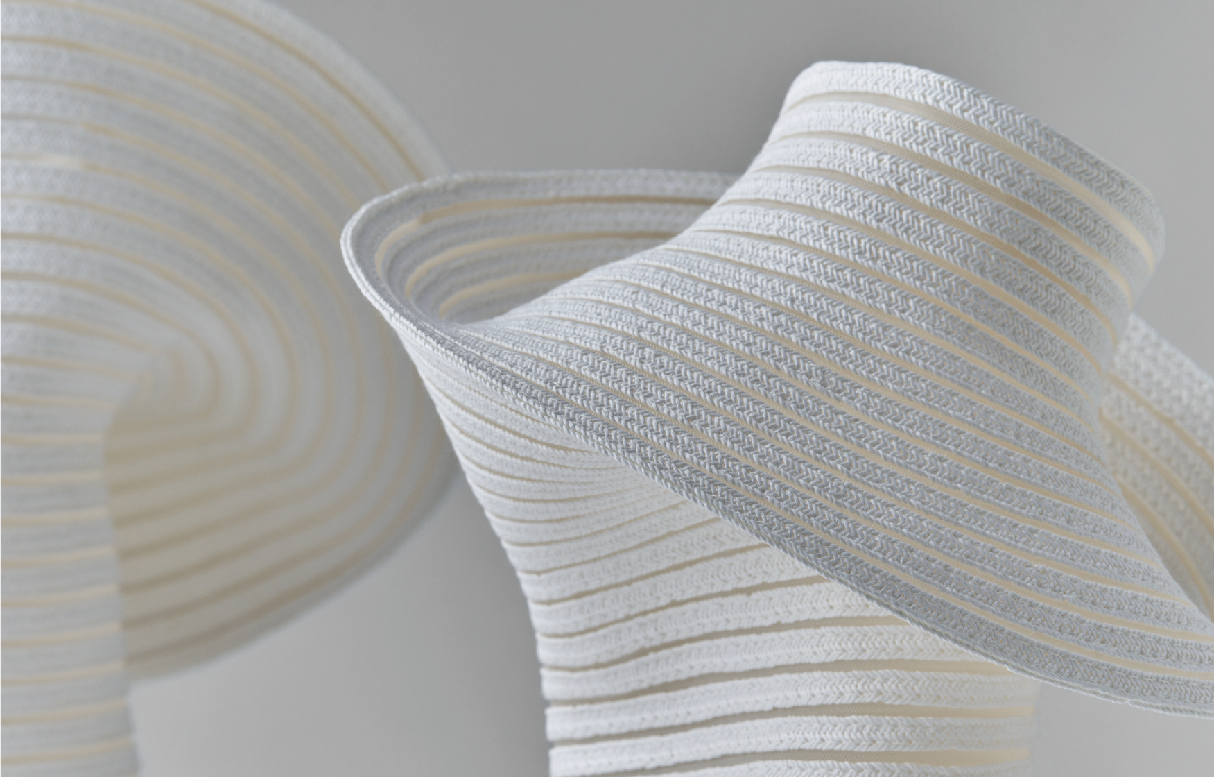 stripe stripe に新しい仲間が加わりました。白をベースにした異素材の組み合わせのストライプは空間に軽やかさと清潔感を与えてくれるインテリアオブジェです。しっとりとした白の和紙と張りのあるシースルー素材の組み合わせで、ストライプとしての主張は控えめですが、光を透過することでその印象に強弱が生まれます。動きを加えれば、軽やかな印象で空間に透明感と清潔感を与えてくれます。性質の異なる2つの素材のコンビネーションは、柔らかく馴染もうとする和紙と、張りのあるシースルー素材が相反し、どことなくぎこちない表情もつくり出し愛らしさも感じさせてくれます。
