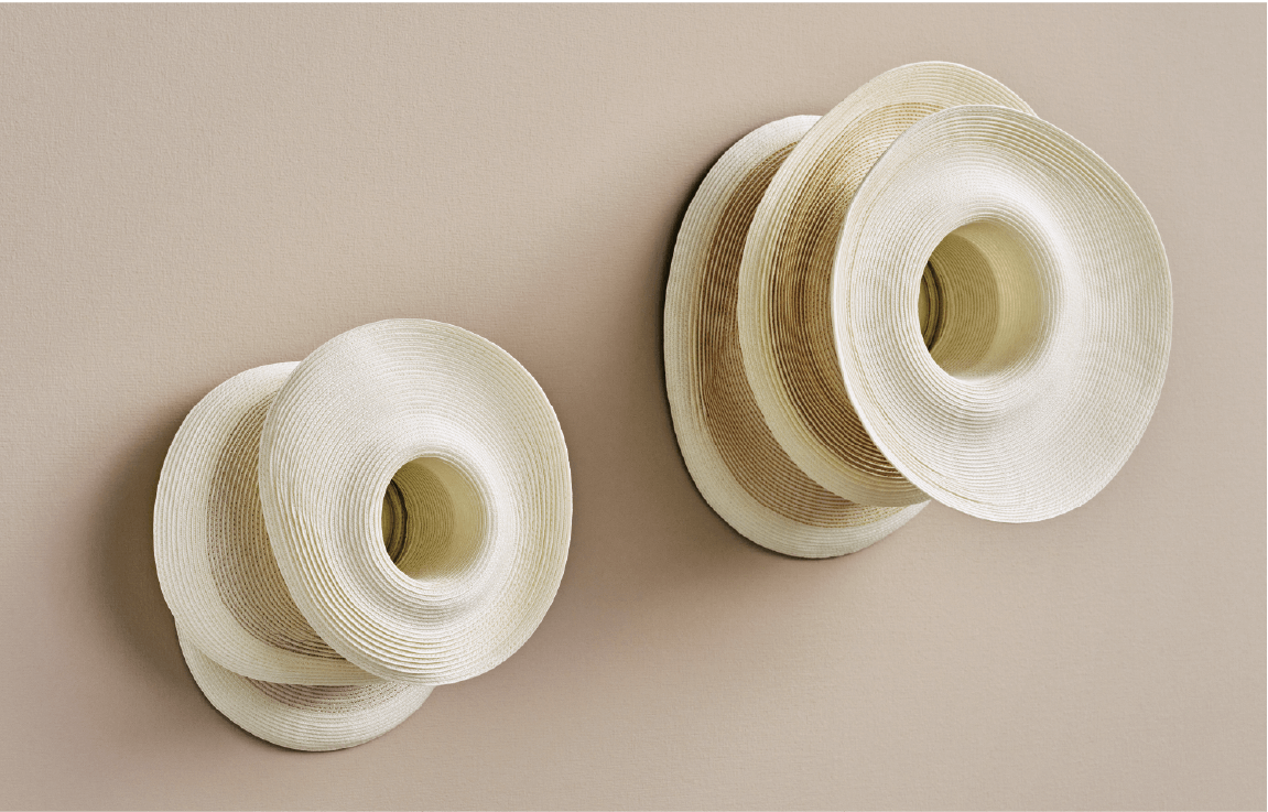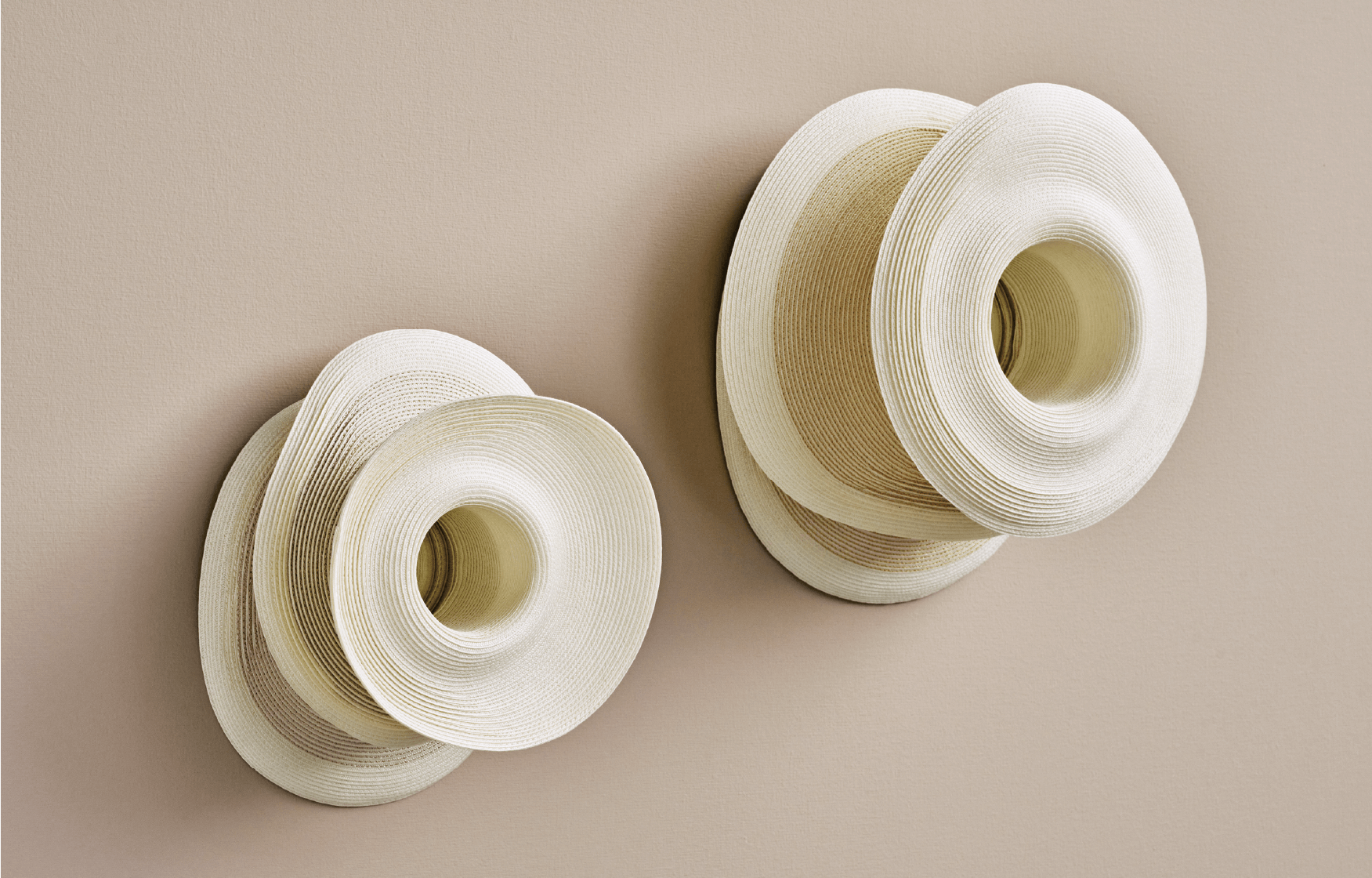 wallpetals(ウォールペタルズ)は、白い花びらが三層に重なり1つの花となり、壁面に咲く様をイメージし構成しています。中心部奥のミラーは、本体の柔らかな印象と相反し空間をシャープに切り取り、思わずのぞいてみたくなります。奥の2枚に施されたゴールドもしくはシルバーのステッチをポイントカラーに、手前の2枚を回転させたり手前に起こしたり、花を咲かせる様に壁面を彩りお楽しみください。